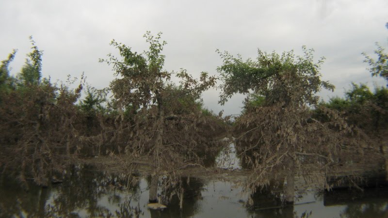 Granica wody zaznaczona jest kolorem. Burym. Co wyższe drzewa mają od góry zielone korony. Ale to podobno kwestia dni jak też umrą.