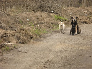 ...Świnie też się potopiły. Jedna to mi do domu razem z oknem wpłynęła. Te psy mi tylko zostały. Przesiedziały na dachu.