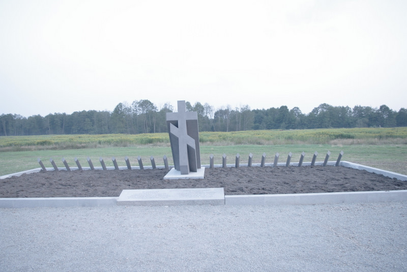 Ciężko było nam trafić na miejsce ponieważ ludzie nie umieli nic w temacie powiedzieć. W końcu jednak znaleźliśmy drogę. Co ciekawe okazało się, że nie została tam wybudowana jedynie mogiła i pomnik ale też wysypano do niej dochodzącą drogę i postawiono most aby przejść przez niewielkie źródło wody. Ku naszemu zaskoczeniu miejsce nie było puste, a uroczystości miały odbyć się nie kiedy indziej jak dziś!