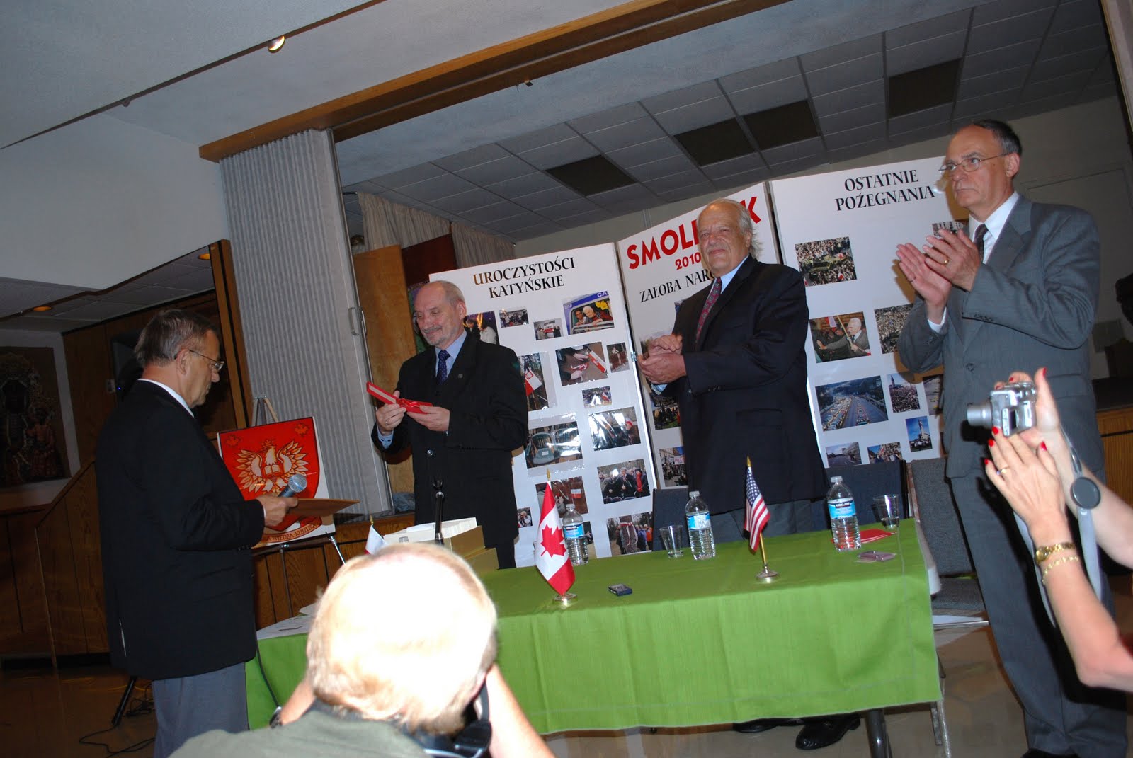 „Pan Macierewicz goszcząc u nas w Ottawie ,w niedziele otrzymał od naszej organizacji -Związku Byłych Żołnierzy Solidarnosci w dowód uznania odznakę Orla Złotego .Za zasługi w sprawie wyjaśnienia zbrodni Katyn2.No i oczywiście za walkie z komuna.gs”