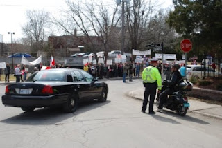 Demonstracja Polaków pod Ambasadą Polską i Ambasadą Rosyjską w Ottawie w dniu 9 kwietnia 2011 roku.