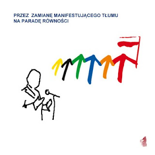 a czerwony dorwał sie do flagi i ciągnie to tęczowe towarzycho za sobą.