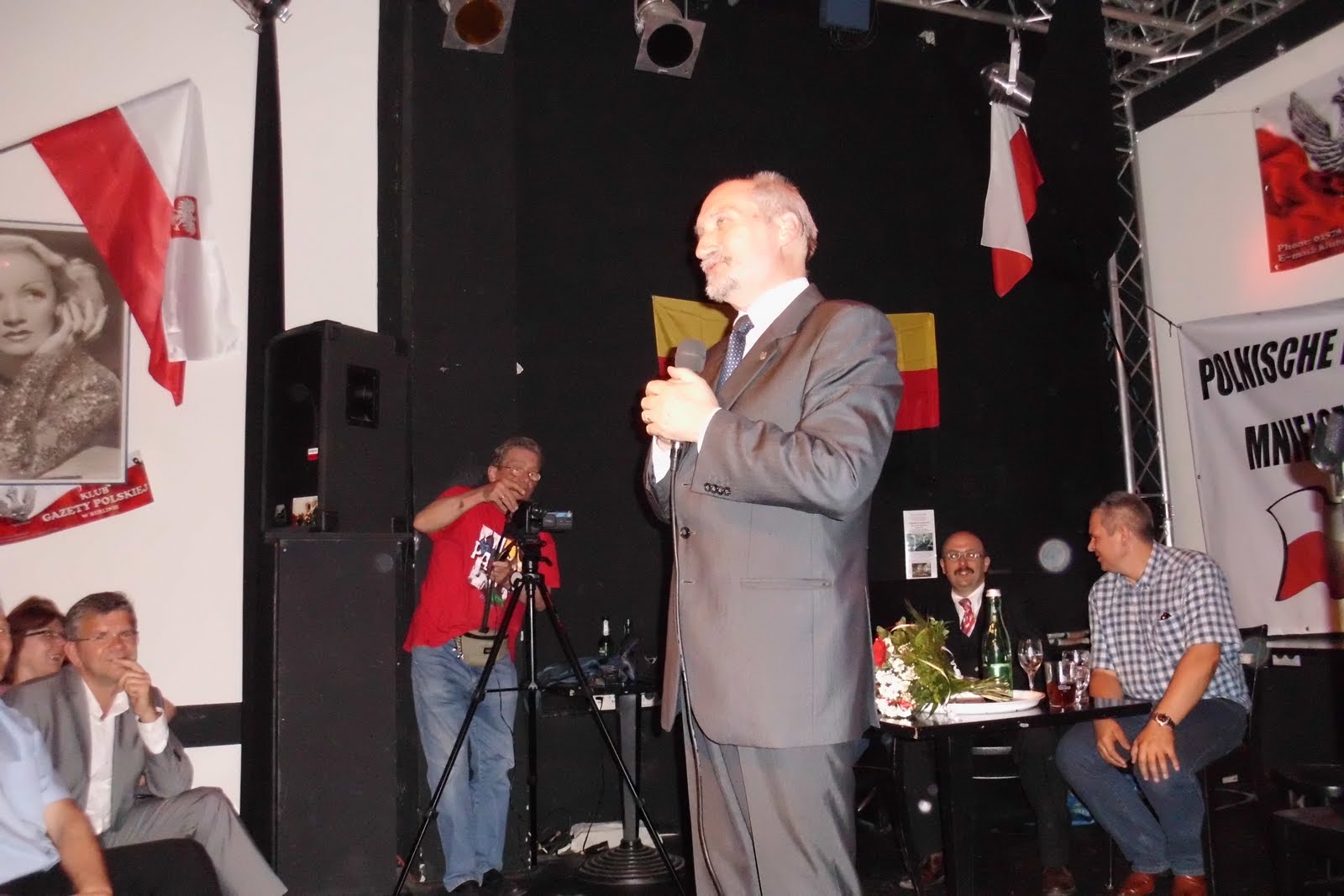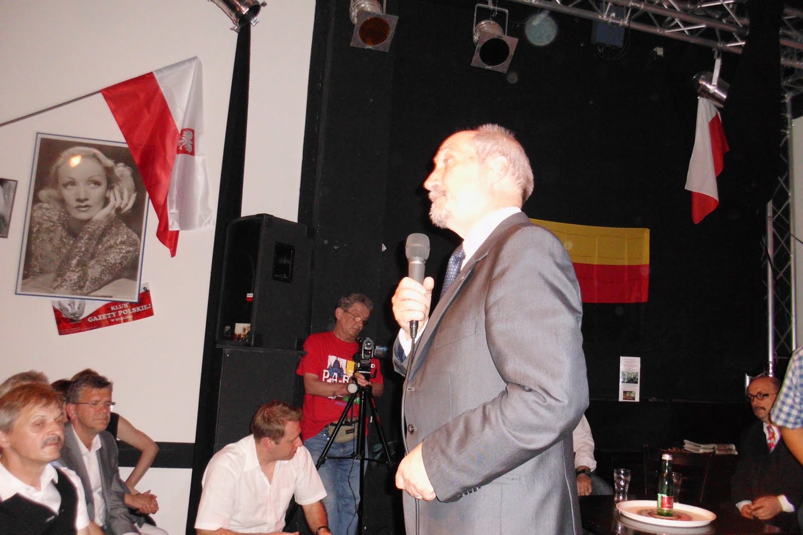 Wczoraj, w niedzielę 22 maja 2011 r. w niedawno powstałym Klubie Gazety Polskiej w Berlinie w kameralnej sali kina Filmbühne (stąd ta Marlena Dietrich na ścianie) gościł min. ad. oraz poseł Antoni Macierewicz, który kieruje parlamentarnym zespołem badającym okoliczności "katastrofy smoleńskiej" z 10 kwietnia 2010r. Wyniki dotychczasowej pracy były tematem spotkania z rodakami w Berlinie. Spotkanie było niezwykle ciekawe, tym bardziej, że cały szereg wypowiedzi pana ministra wzbudził wśród publiczności,która nie jest gapami karmiona, niejakie kontrowersje. Wszyscy jednakże byliśmy panu Macierewiczowi wdzięczni za przyjazd i spotkanie. Z drugiej strony on sam mógł się przekonać, że Polska jest także w Berlinie.