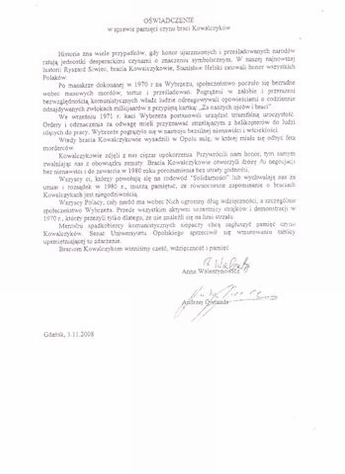 haniebnych celebracji morderców robotników Wybrzeża. Czyn braci