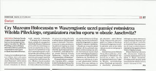 Jak już o tym była wcześniej mowa, choć w Internecie można o tym czytać w różnych miejscach, nasze starania o wprowadzenie Witolda Pileckiego do muzeów Holocaustu, ani trochę nie interesują dziennikarzy ogólnopolskich mediów tradycyjnych. Chociaż polscy (i polonijni) dziennikarze informowani byli od dawna, jedynymi gazetami, w których wiadomość przekazano, było legnickie wydanie katolickiego tygodnika „Niedziela” oraz krakowski „Dziennik Polski”: