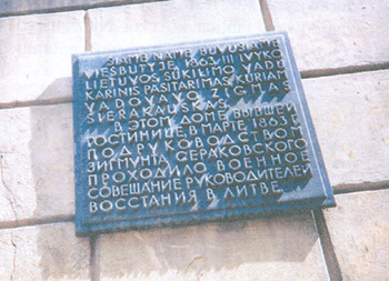 Natomiast w tym miejscu wmurowano tablicę litewską informującą, że tu mieszkał Jonas Basanavičius.