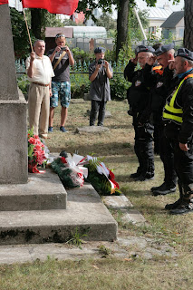To właśnie Pani kapitan zabrała głos na początku uroczystości. Chlebem witali morocyklistów przedstawiciele naszego społeczeństwa Polaków w Lidzie. Po krótkim przemowieniu cala grupa ruszyła w stronę Krzyża Katyńskiego, gdzie motocyklisci zapalili znicze. Przemówienie wygłosił Aleksander Kołyszko - prezes Towarzystwa Kultury Polskiej Ziemi Lidzkiej.
