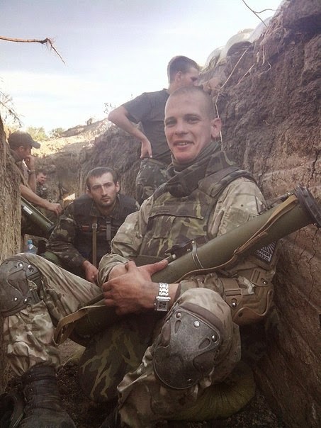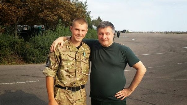 Niżej na fotce po lewej Dymitr Borman, Rosjanin, dowódca pododdziału lekkiej piechoty "Azowa" (Czarny Korpus), który pod Szirokino walczył z kolumną ciężkiego sprzętu paląc kilka czołgów i transporterów, a w finale się wycofał bez strat (dwóch rannych). Po prawej minister spraw wewnętrznych Awakow - po odznaczeniu Bormana orderem "Za Męstwo", do którego przedstawił go Biłeckij.