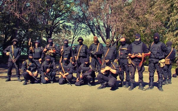 [wiosna 2014 - "czarne ludziki" przeciw "zielonym ludzikom" Putina. Grupa Rosjan z "Azowa" - jeszcze jako partyzanci]