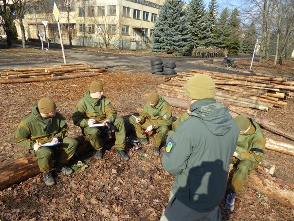 [szkolenie kijowskiej obrony cywilnej (białe plakietki) połączone z selekcją chętnych do "Azowa"]