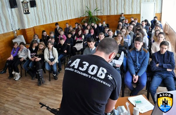 "Azowcy" współpracują ze szkołami na terenach przez siebie kontrolowanych organizując zarówno wycieczki do Kijowa czy Lwowa z ukraińskim programem historyczno-tożsamościowym, jak i stacjonarne zajęcia z pierwszej pomocy, czy przysposobienia obronnego.