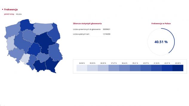 PKW podała informację dotyczącą frekwencji wyborczej na godzinę 17. Według danych PKW frekwencja wyniosła 40,51 procent.