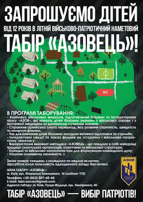 W sezonie letnim "azowcy" będący na zapleczu frontu zorganizowali rozłożony na turnusy obóz dla dzieci w wieku powyżej 12 lat. Przyjęta metodyka to połączenie klasycznego skautingu w wersji Baden-Powella - oswojenie z przyrodą, ćwiczenia z pierwszej pomocy, gry terenowe - ze szkoleniem strickte paramilitarnym poszerzonym o program zajęć tożsamościowych i historycznych.