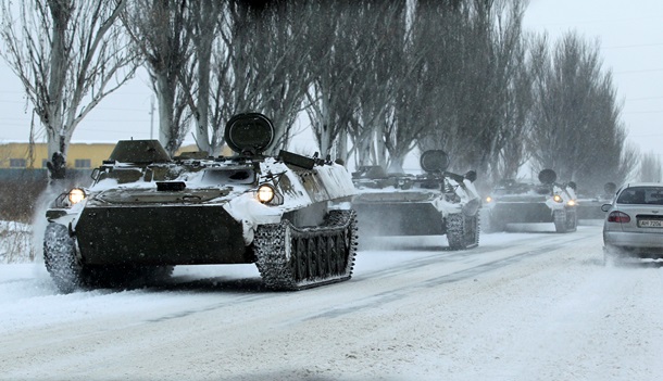 [a tu "urlopowana" rosyjska kolumna na peryferiach Ługańska - styczeń 2015]