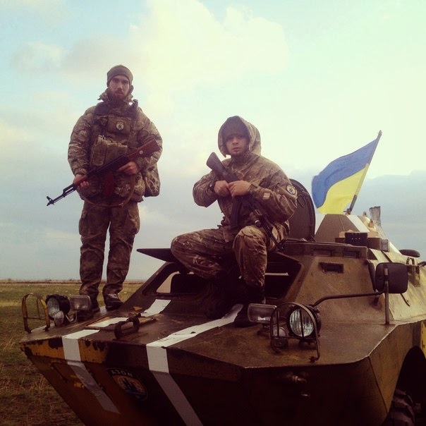 Niżej krótki materiał ukraińskich wiadomości o akcji jednostki "na otwarcie" oraz dłuższy filmik. Na filmiku widzimy "przesłuchiwanko" byłego ministra obrony "donieckiej republiki ludowej" oraz drugiego jeńca przez Liaszkę. W tle ludzie z "Azowa" pierwszy raz na wizji (czas - 22:04, materiały z przysięgi upubliczniono później). Old-schoolowe kałachy i stare ukraińskie mundury, a właściwie drelichy. To niemal cywil-banda w hełmach. Albo jeszcze partyzantka. Oni pierwsi zaczęli serio działania zaczepne wobec "separatystów". Odbierający jeńców antyterroryści (można się cofnąć kilka minut, by zobaczyć), czy "Azow" w aktualnym wyposażeniu (fotki pod koniec notki) na tym tle wyglądają jak ekspedycja z przyszłości.