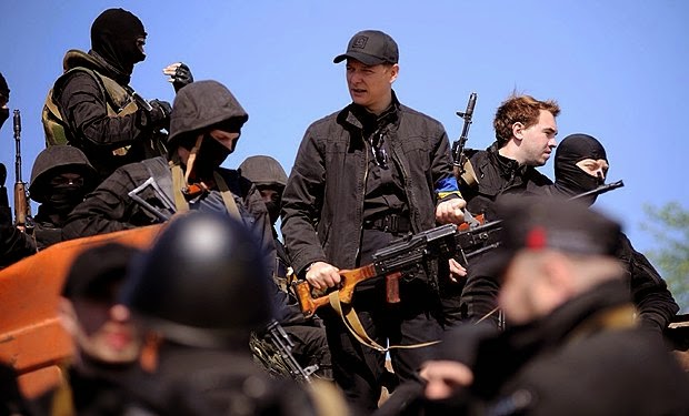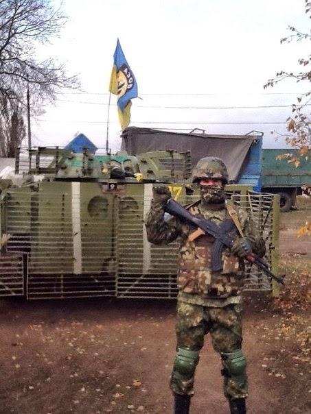 [jeden z "azowców" w Mariupolu w czerwcu 2014. Nie wygląda na młodego ukraińskiego nacjonalistę]