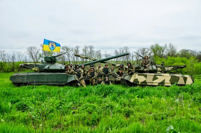 Na początku maja 2014 została utworzona przez ukraińskich nacjonalistów i szybko zaczęła odnotowywać sukcesy na froncie. Moją uwagę zwróciła symbolika. Mimo, iż dowódcą jest Andrij Biłeckij, szef Socjal-Nacjonalistycznego Zgromadzenia (SNA) oraz paramilitarnej organizacji Patrioci Ukrainy współtworzących Prawy Sektor jawnie odwołujący się do Bandery i posługujący się barwami UPA - czerwienią i czernią... Specjalny ochotniczy batalion MSW "Azow", bo o nim będzie mowa, banderowskich barw nie stosuje (moje bieżące komentarze do działań "Azowa" - od najnowszych). 13 marca w porozumieniu z szefem PS Dymitrem Jaroszem Biłeckij objął dowództwo nad częścią organizacji: "Prawy Sektor - Wschód" (województwa: charkowskie, donieckie, połtawskie i ługańskie)