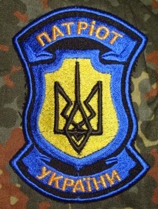 [z czasem, gdy ośrodek stał się miejscem szkolenia charkowskiej cywilnej samoobrony, nad centrum przejęli patronat Patrioci Ukrainy, co znalazło wyraz w stosowanej wersji odznaki jednostki - kliknij by powiększyć]