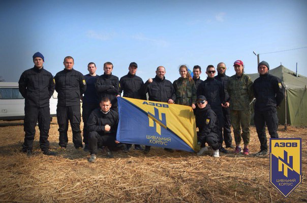 Są wśród niej żołnierze, ale na razie występują z emblematami politycznego zaplecza jednostki - Korpusu Cywilnego "Azow"
