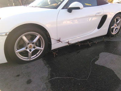 Od czasu do czasu coś się dzieje. Przedwczoraj chciało się przebić na Krym Porsche z zapasem spożywki. Gdy po próbie zawrócenia przez "azowców" kierowca próbował się przedrzeć przez blokpost na znak dowódcy patrolu "Azowa", ludzie z Prawego Sektora naciągnęli zainstalowaną przez siebie niespodziankę i jazda się skończyła.