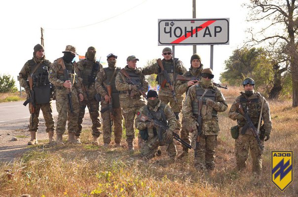 16.10.2015: no i w Czongarze wszystko zgodnie z przewidywaniami. Aktywiści "Azowa" okazali się czwartą sotnią jednostki. Na polecenie szefa MSW Awakowa włożyli mundury, wzięli broń i jako mobilna formacja Gwardii Narodowej mają patrolować "granicę" z Krymem, blokować kontrabandę i przewóz komercyjnych towarów z Ukrainy.