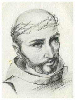 Dla siebie był twardym. Postami i bezsennością umartwiał swe ciało. Wolne chwile poświęcał na modlitwę. Razu pewnego, kiedy był pogrążony w modlitwie, ukazała mu się Matka Boża i włożyła koronę cierniową na jego skronie. W tej chwili uczuł bardzo bolesny ból w głowie. Było to uprzytomnienie boleści cierniem ukoronowanego Zbawiciela. Stąd też przedstawiają go z koroną cierniową na skroniach.