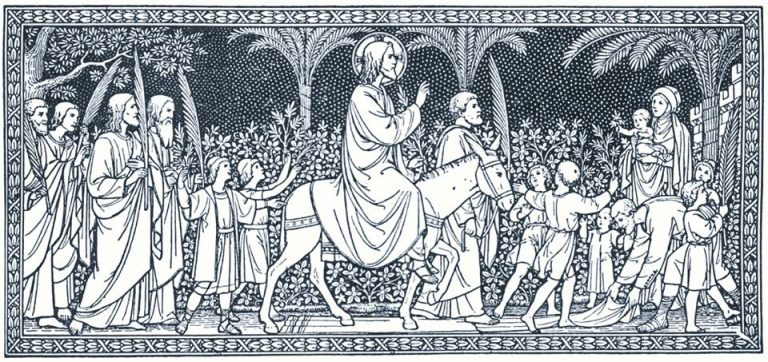 W Jerozolimie wszczął się ruch wielki, gdyż niedawno przedtem wskrzesił był Jezus Łazarza, który od trzech dni leżał w grobie; cudu tego nikt zaprzeczyć nie mógł. Lud był w uniesieniu radości, kapłani zgrzytali zębami. Gdy się rozeszła pogłoska, że cudotwórca się zbliża, lud wyszedł na Jego przyjęcie, oddawał Mu hołdy królewskie, słał Jego drogę gałązkami palmowymi i wołał: "Hosanna, błogosławiony, który idzie w Imię Pańskie król izraelski!" (Jan 12,13). Tak wiec okrzyknięto Zbawiciela Królem Izraela, a ów okrzyk "Hosanna" był potępieniem tych, którzy w pięć dni potem wołali: "Ukrzyżujcie Go!"