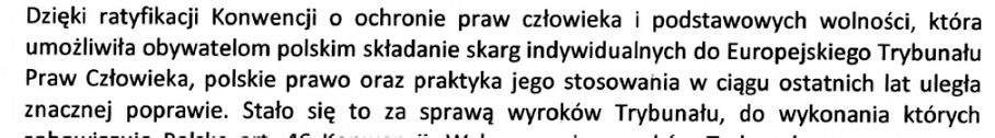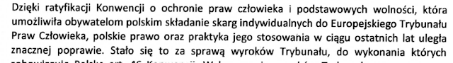 Nie wiadomo czy śmiać się czy płakać. Najwyraźniej odpowiadający nie bywa w polskich sądach, nie widzi jak codziennie narusza się w nich prawa obywateli. Stowarzyszenie Interesu Społecznego WIECZYSTE wielokrotnie się o tym przekonało, a skargi obywateli do Strasburga są odrzucane często a priori, bez żadnego uzasadnienia. Odnośnie zmiany prawa, czy MSZ ma na myśli ideologiczną konwencję o zabopieganiu przemocy wobec kobiet (a niby PIS był przeciw?)