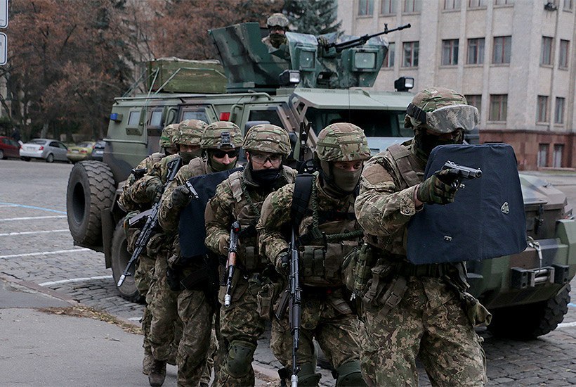 Aby przybliżyć faktyczną sytuację na wschodzie, należy przypomnieć o antydywersyjnych ćwiczeniach doborowych jednostek MSW w Charkowie i okolicach Mariupola oraz o niezmiennie licznych siłach Wojsk Wysokomobilnych na dużym poligonie w Dnipro (przed dekomunizacją nazw - Dniepropietrowsku). Można do tego dodać mocny ośrodek Gwardii Narodowej w Zaporożu i ćwiczenia nowej szkoły sierżantów MON pod Odessą z udziałem kadetów specnazu, Piechoty Morskiej oraz armatohaułbic MON. Pancerne "stawiacze min" ćwiczyły działania w okolicach przesmyku między Krymem a kontynentalną Ukrainą...