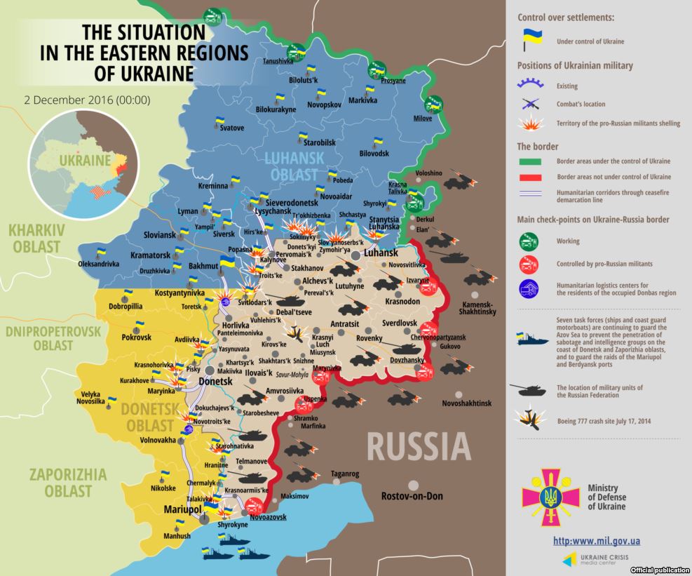 Niżej opublikowana przez Kijów mapka mająca ilustrować aktualny stan konfliktu.