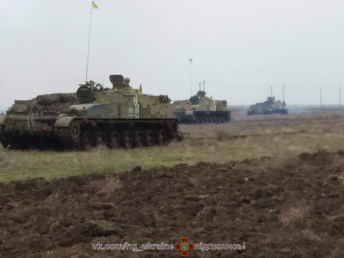 Odchodząc od MSW... Gąsienicowe rozstawiacze min GMZ-3 w pobliżu przejazdu z kontynentalnej Ukrainy na Krym ćwiczyły działania w szyku, czyli tworzenia przeciwpancernych pól minowych w czasie boju