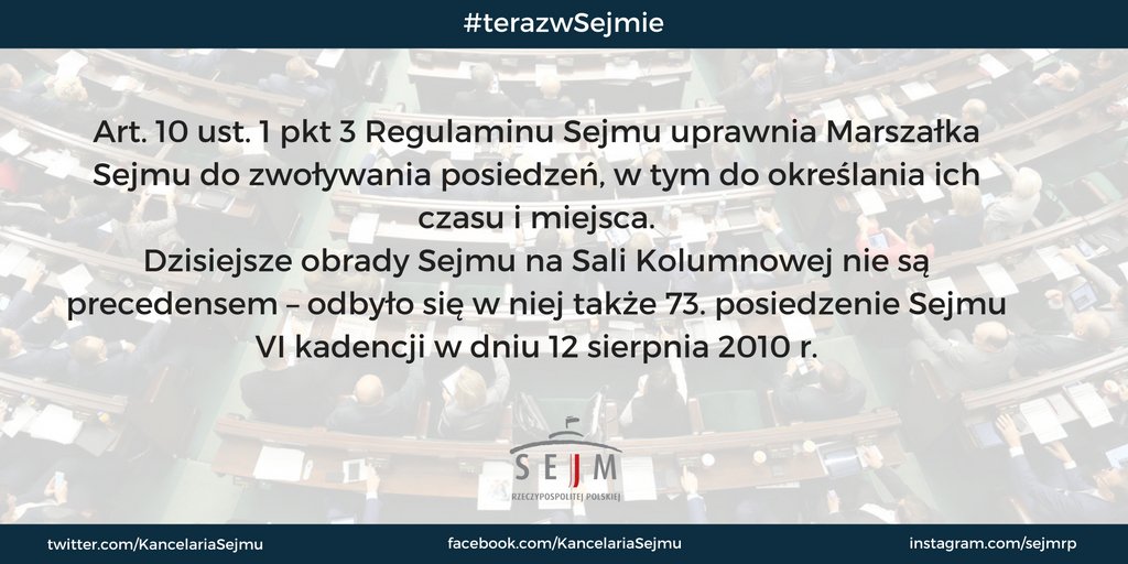 ps. Prawo i Sprawiedliwość przeniosło obrady do Sali Kolumnowej! Zaczynają się głosowania. Na sali jest 240 posłów.Na sali - oprócz posłów PiS - jest też kilku posłów Platformy i innych klubów.