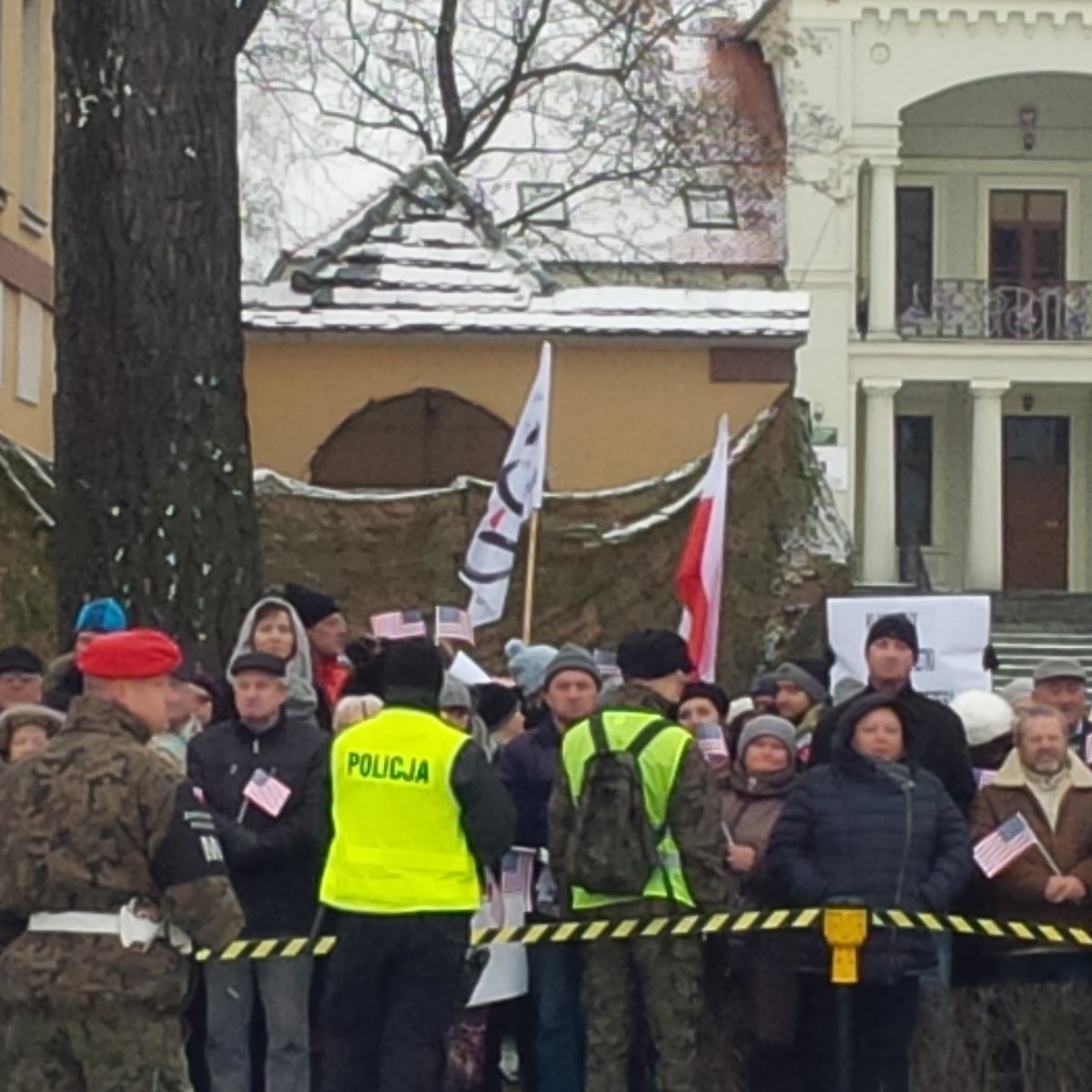 #Żagań Powitanie wojsk amerykańskich#KOD krzyczy "Macierewicz do domu", inni "God bless USA"@RadioZET_NEWSMaryla