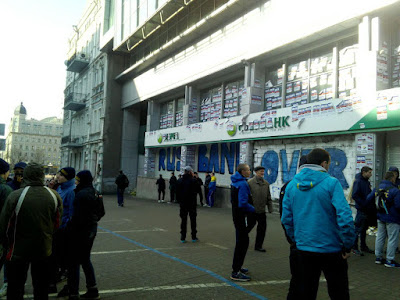 Kresy.pl: W nocy 12 marca br. nieznani sprawcy uszkodzili za pomocą pianki montażowej kilkadziesiąt bankomatów należących do rosyjskich banków działających na Ukrainie – powiadomiła służba prasowa pułku Azow. Ściśle związana z Azowem partia Nacjonalny Korpus nie przyznała się do przeprowadzenia tej akcji, lecz oświadczyła, że ją popiera: Nacjonalny Korpus popiera tę inicjatywę i przypomina, że walka patriotów z rosyjskimi wpływami w ukraińskim systemie bankowym, którą zaczęliśmy w styczniu tego roku, trwa i będą jej towarzyszyć podobne radykalne działania. Gdy państwo nie działa, musi przemówić naród. (...)