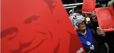 Podobno poseł Szczerba stwierdził, że ta czerwień z D. Tuskiem w tle (albo D. Tusk z czerwienią w tle) jest "przeciw antyeuropejskim rządom PiS" (czy jakoś tak), jako tzw. "czerwona kartka"... Hm...