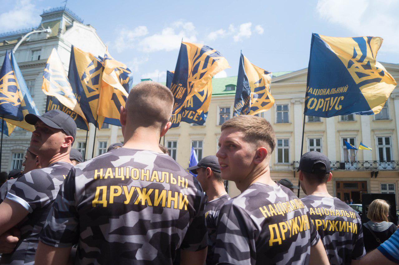 Wśród ludzi, którzy pikietowali radę rozpoznano członków ugrupowań Narodowy Korpus (politycznego ramienia pułku „Azow”) i Swoboda. Deputowani tej ostatniej byli autorami projektu uchwały.