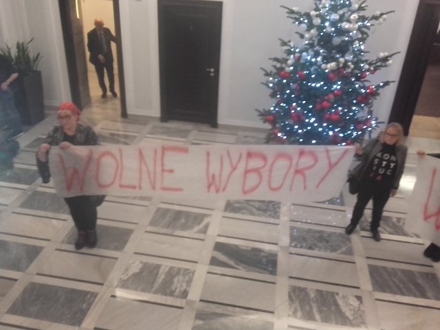 Po godz. 19.00 pod salą obrad Senatu kilka aktywistek rozwinęło