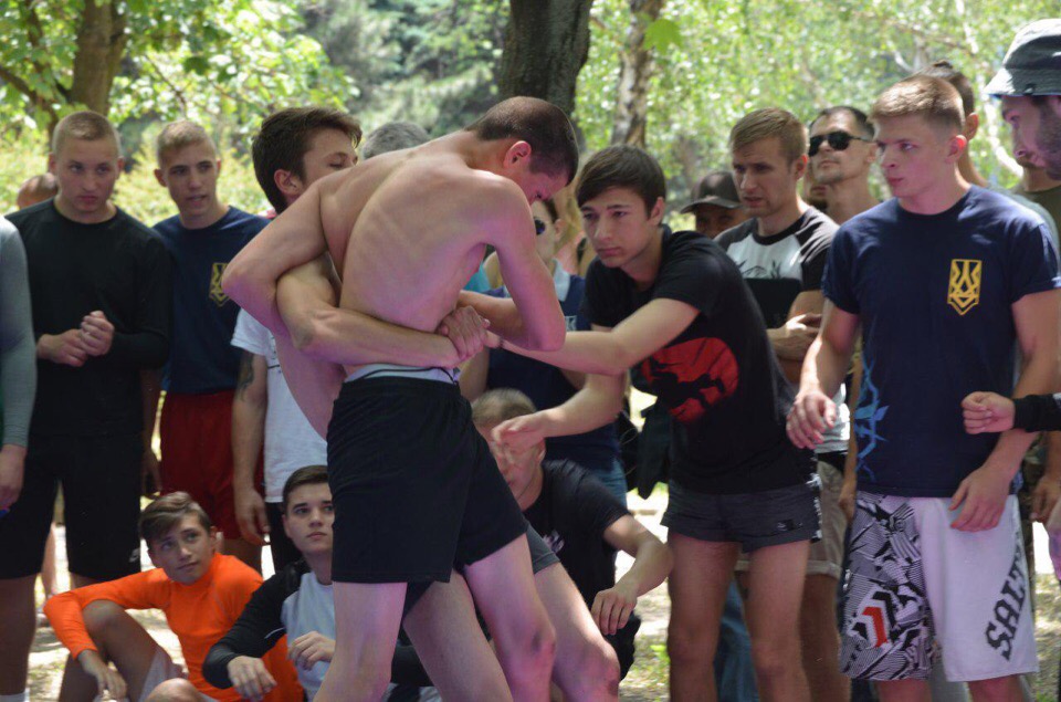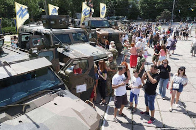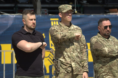 Wyraźnie to oni byli gospodarzami wydarzenia. Z udziałem delegacji wszystkich sił podległych MSW stacjonujących w sektorze Mariupola. Po wystąpieniach wręczono różne nagrody i odznaczenia. Gdy zakończyła się część oficjalna, mariupolcy chętnie skorzystali z okazji przyjrzenia się z bliska sprzętowi "Azowa".
