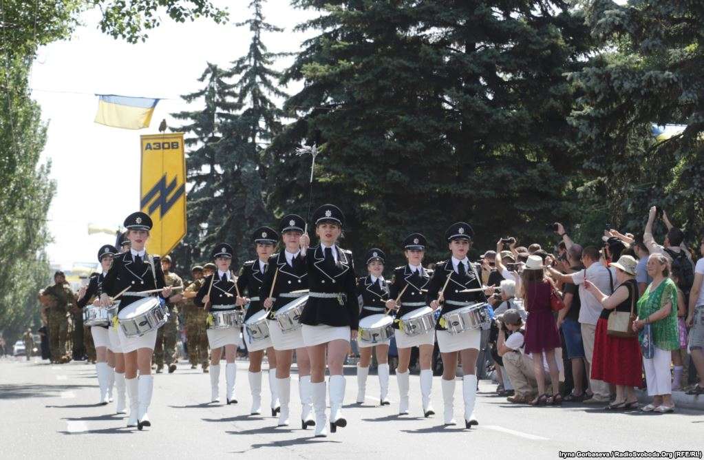 Na powyższym filmie od momentu 0:17 mamy kolejno reprezentacje: Samodzielny Zagon Specjalnego Przeznaczenia "Azow", 2 Batalion Specjalnego Przeznaczenia "Donbas" należący do 18 operacyjnego pułku Gwardii Narodowej, mariupolscy pogranicznicy (zielone berety), pogranicznicy morscy (mundury marynarki), KORD (policyjne oddziały specjalne - szkolone przez Amerykanów na wzór SWAT - czarne mundury), policja państwowa. Dalej fragment defilady, na którym widać trochę więcej.