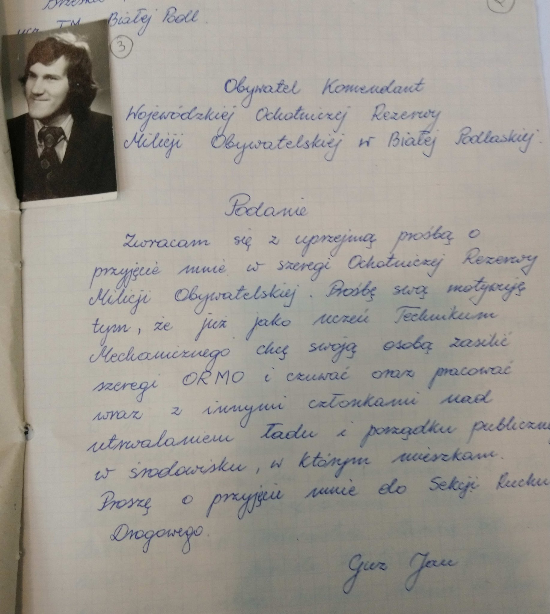 Zwracam się z uprzejmą prośbą o przyjęcie mnie w szeregi Ochotniczej Rezerwy Milicji Obywatelskiej (...) chcę swoją osobą zasilić szeregi ORMO...