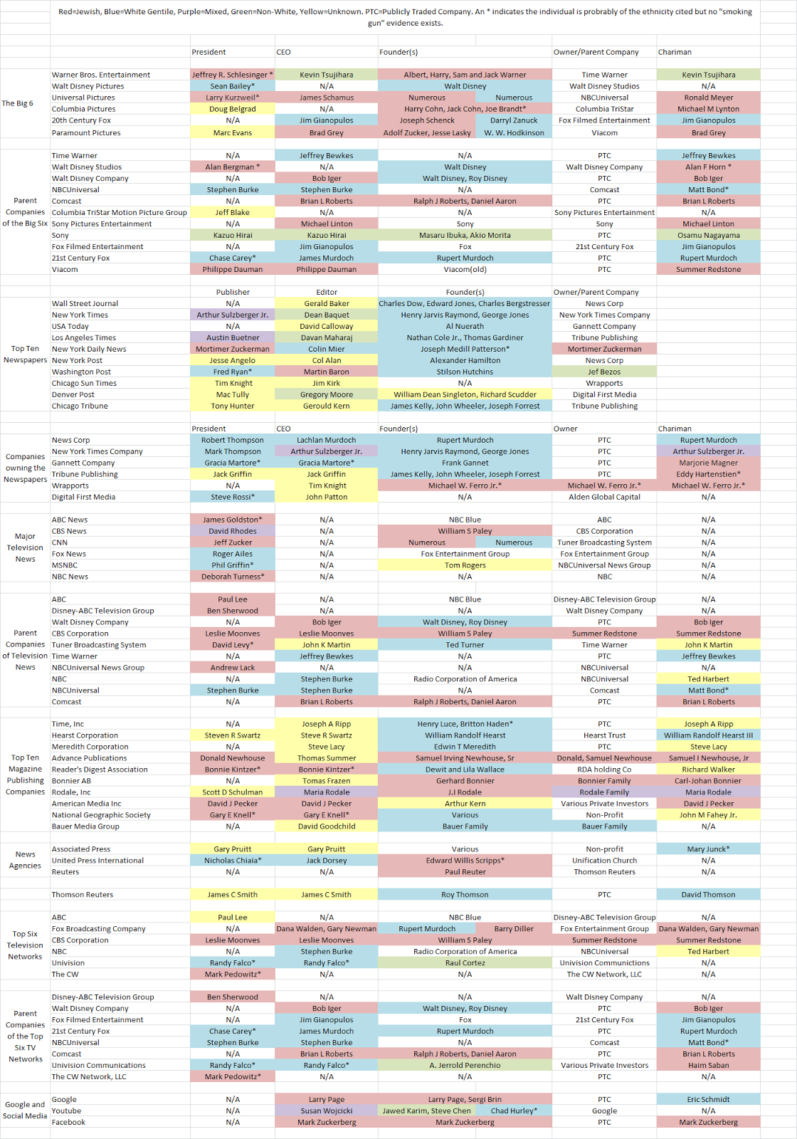 Czy on ma rację? Oczywiście, że tak. Żydzi, którzy stanowią 2% populacji amerykańskiej, stanowią około 30–47% prezesów, założycieli, prezydentów i prezesów dużych firm medialnych. To są niezaprzeczalne fakty nie do poważenia. A to, co się dzieje w mediach, dotyczy także sal akademickich: w pracy Charlesa Kadushina z 1974 r. wskazano, że wśród amerykańskiej elity intelektualnej Żydzi reprezentowali prawie jej połowę.