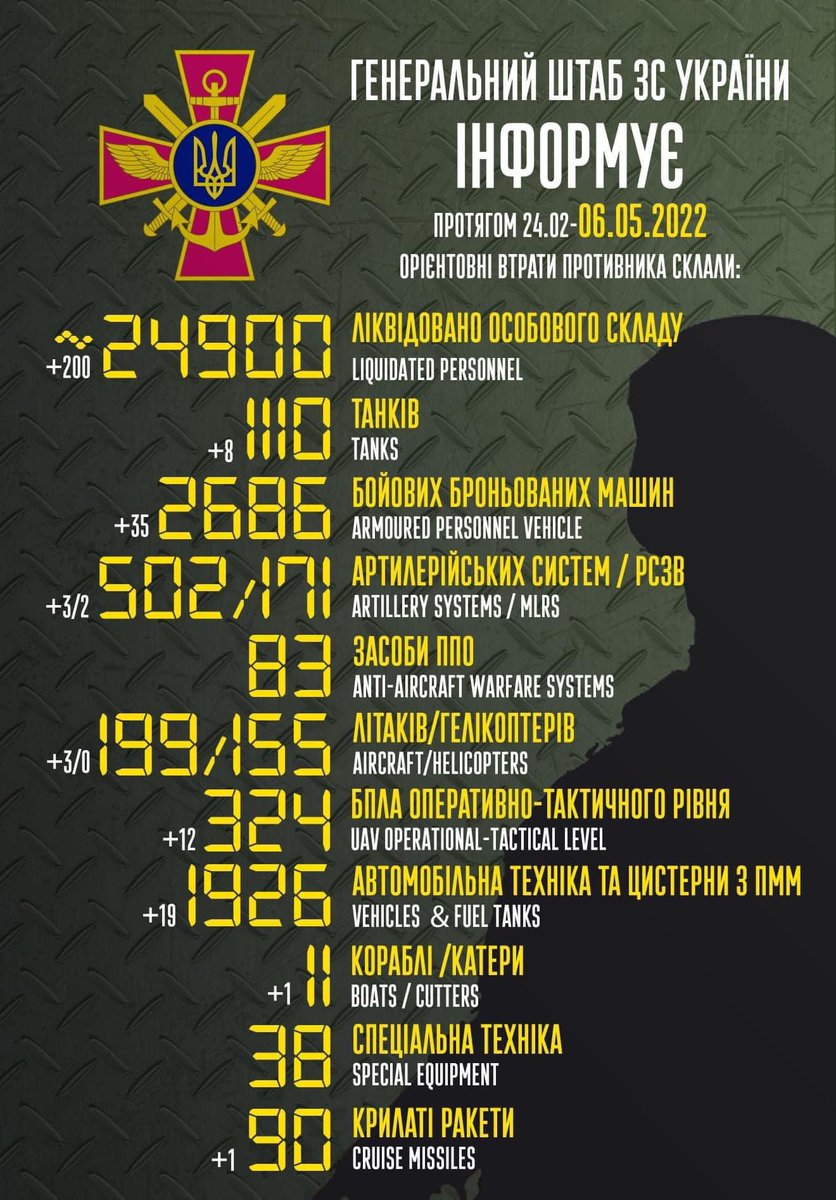 8. Rosyjskie straty wojenne do 6 maja 2022 roku